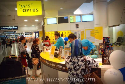 Keluar je dari Arrival Hall, kita akan jumpa 2 telco.. Vodafon dan juga Yes Optus.